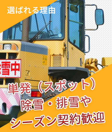 - 急な大雪、単発(スポット)除雪・排雪からシーズン契約でお受けしております。お気軽にご相談下さい。